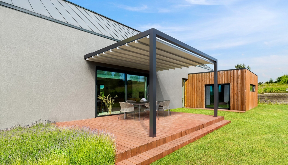 Pergotende z zložljivim ostrešjem omogočajo popoln nadzor nad količino svetlobe in zračenja, saj lahko streho enostavno odprete ali zaprete glede na svoje želje ali vremenske razmere.